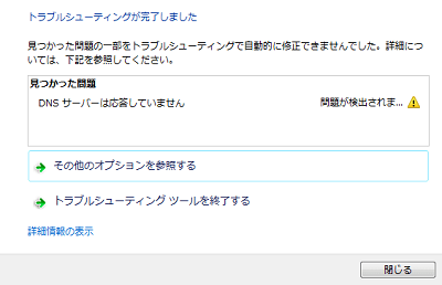 「DNSサーバーは応答していません」