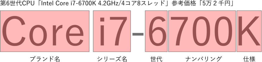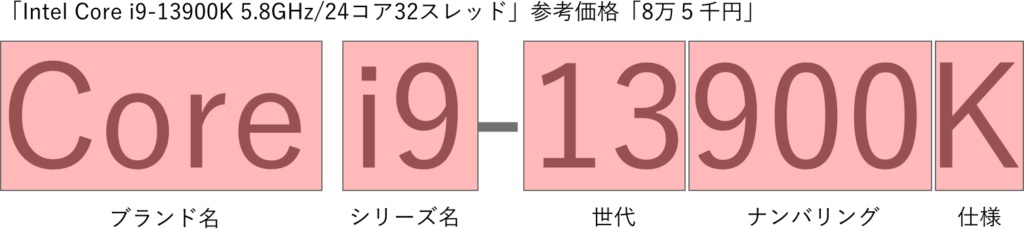 「シリーズ名」は数字が高いほど性能も良くなり「i3」「i5」「i7」「i9」の順番で良くなっていきます。