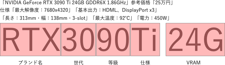 ですので「RTX3070Ti 8G」と「RTX2080Ti 11G」はどちらが優れているかは、表示だけではわかりません。