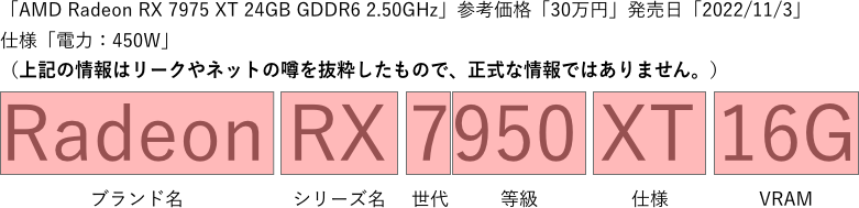 「AMD」社からは「Radeon RX 7000シリーズ」から「RX7950XT」「RX7800XT」など7モデル(発売日:2022年11月3日予定?)注意:リークに基づいた情報ですので正式な情報ではありません。