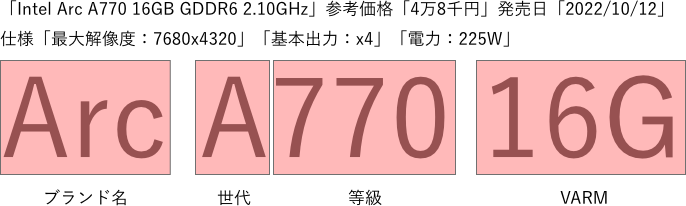 「Intel」社からは「Arc αシリーズ」から「Arc A770」「Arc A750」の2モデル(発売日:2022年10月12日)