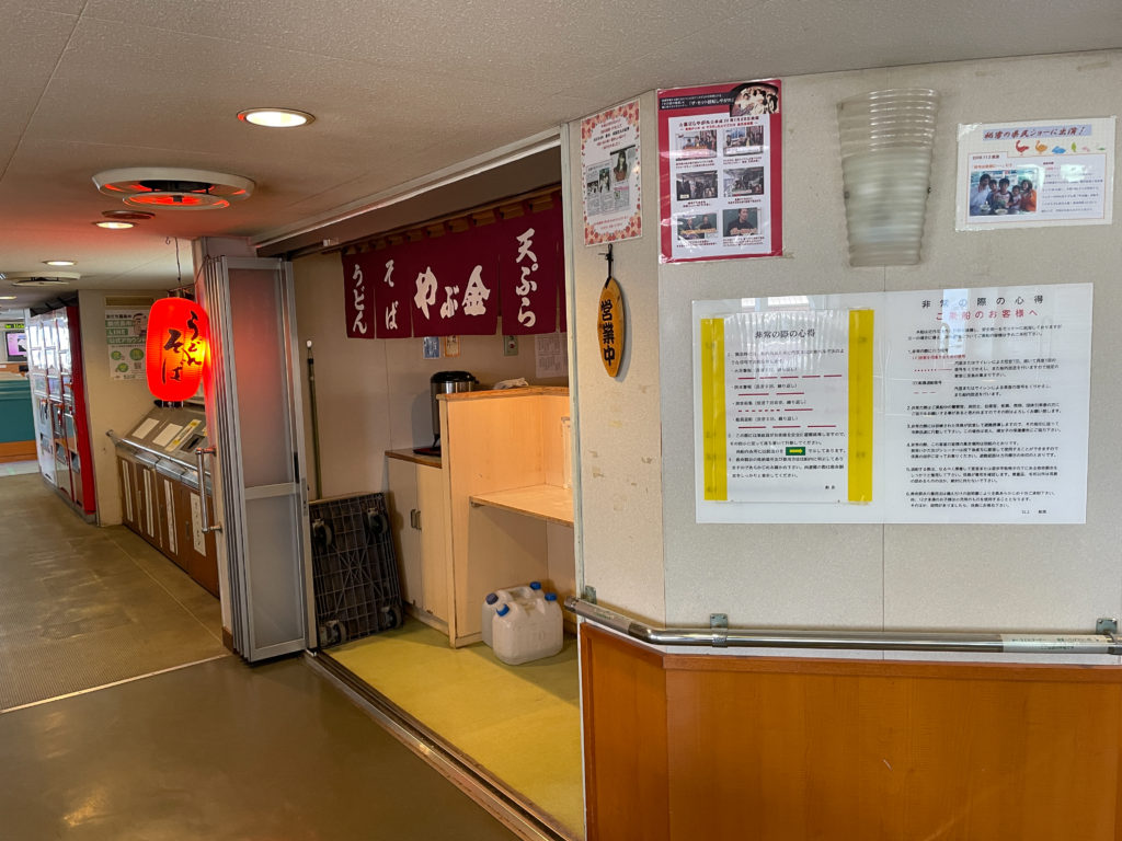 フェリー内の飲食店といえば味の長老やぶ金のうどんが有名。約40年の歴史ある老舗店ということもあり、その味は確かなものです。片道15分という短い時間ではありますが、ついつい食べたくなってしまいますよね。動画内でもご紹介しているので是非みて実際に食べてほしいです。かけうどん・そばは各種450円から提供されています。