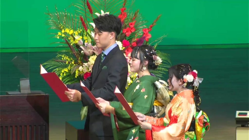 市民文化ホールは、とても色鮮やかな晴れ姿をした「新成人」の皆さんで溢れていました。